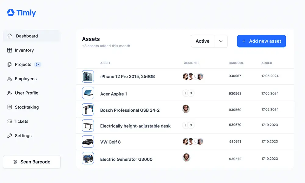 With Timly, you always have a complete overview of your inventory — from tools and machines to equipment and other items. All relevant information is stored centrally and is instantly accessible. This helps you reliably meet compliance requirements, efficiently manage maintenance and deadlines, and minimize manual administrative work.