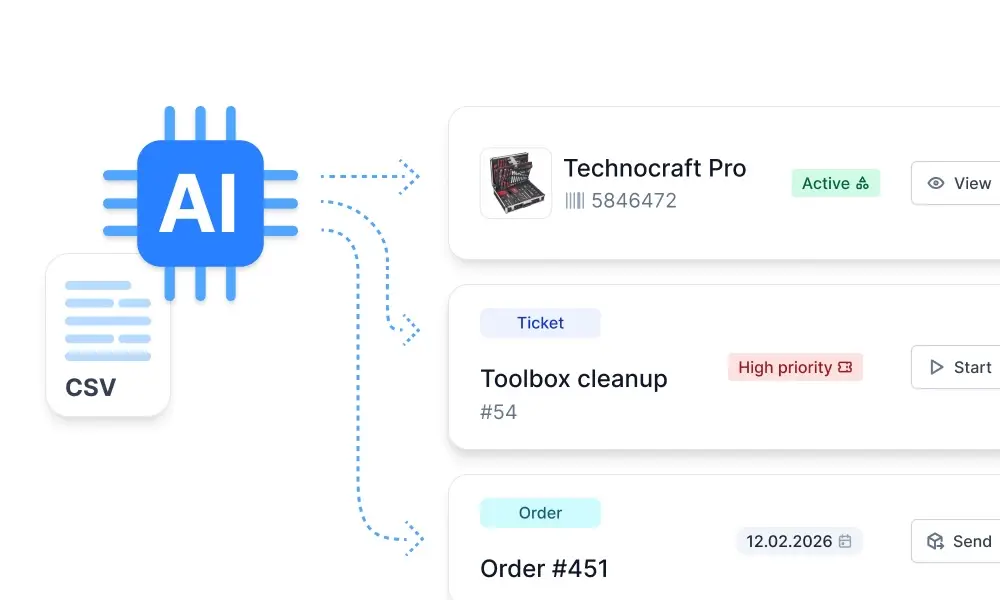 With Timly AI, the decision always stays with you. The AI provides suggestions, prioritizes alerts, and highlights anomalies, but it does not make any changes to master data, maintenance tasks, or imports without your explicit approval. You review, adjust, and approve — Timly AI supports you but does not automate your responsibility.
