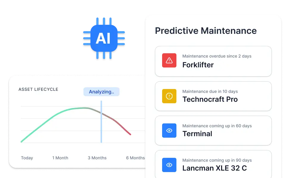 Maintenance histories, tickets, documentation, and activities contain a wealth of information — but can be hard to get an overview of. AI helps you make decisions faster, with more confidence, and less searching.