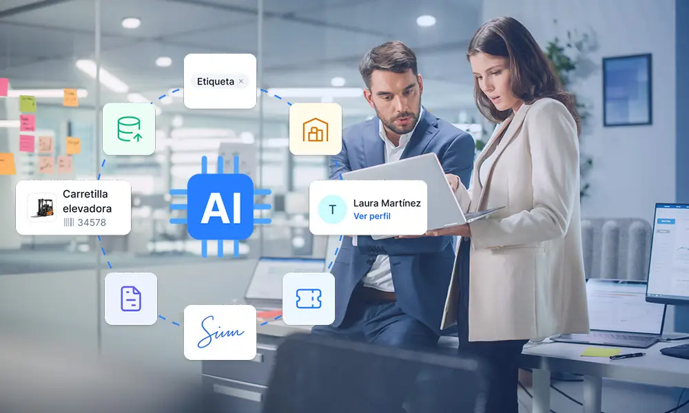 Los historiales de mantenimiento, tickets, documentación y actividades reúnen mucha información valiosa, pero suele ser difícil obtener una visión de conjunto. Con IA puedes tomar decisiones más rápidas y fundamentadas, dedicando mucho menos tiempo a buscar información.