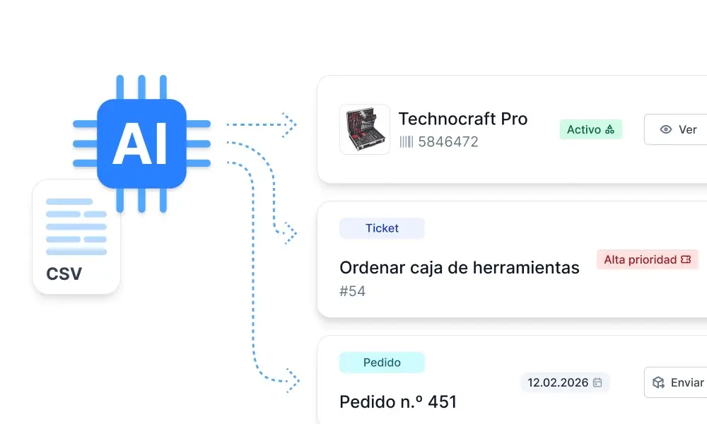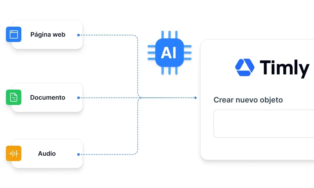 Timly IA amplía las funciones existentes de Timly con ayuda inteligente a lo largo de tus procesos diarios. Te ayuda en la captura de datos y en la importación de CSV, reconociendo campos, proponiendo asignaciones adecuadas y reduciendo errores habituales para que puedas trabajar más rápido con datos limpios.
