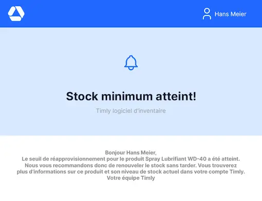 • Recevez des notifications automatiques lorsque les niveaux de stock minimum et de remplissage sont atteints.
